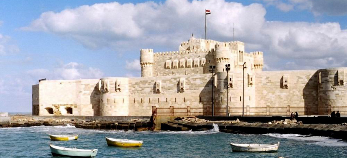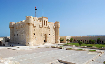 Fortaleza de Quaitbey: Construida en 1479 por el sultán mameluco Quaitbey en el lugar donde una vez estuvo el legendario faro de Alejandría, esta impresionante fortaleza contiene algunas de las piedras de la mampostería del Faro así como columnas de granito rojo en el lado oeste de las paredes externas. Hoy en día es un museo marítimo. Las vistas desde las murallas son magníficas.