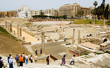 Anfiteatro romano: Único en su tipo en Egipto, este anfiteatro de elegante mármol del siglo II es uno de los monumentos mejor conservados del país. Los espléndidos mosaicos de los suelos de la escena y los granitos causan admiración aún hoy en día.