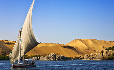 En el sur de Egipto, el tiempo parece detenido como las sosegadas aguas del río. Barcas con velas blancas triangulares entran y salen del puerto de Asuán, y las garzas se esconden en los cañaverales donde en tiempos acechaban los cocodrilos como el antiguo dios Sobek. Pequeñas islas cerca del Trópico de Cáncer llenas de palmeras, dátiles y bananeras ofrecen sombra al viajero. Visite antiguos templos que parecen brotar misteriosamente de las aguas, y pueblos nubios con las casas pintadas de cegadores colores frente al ocre de las rocas y el desierto.