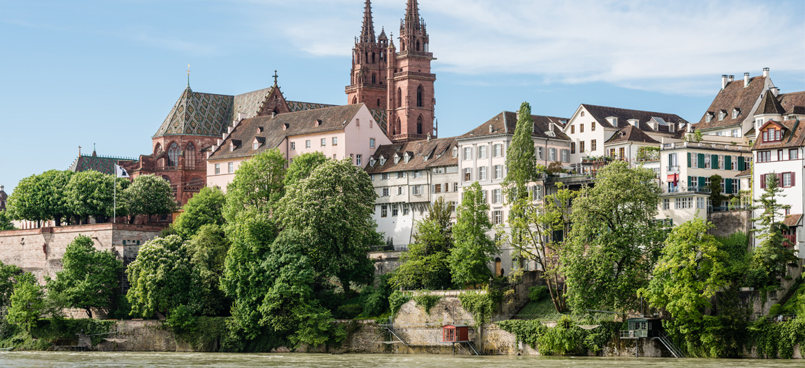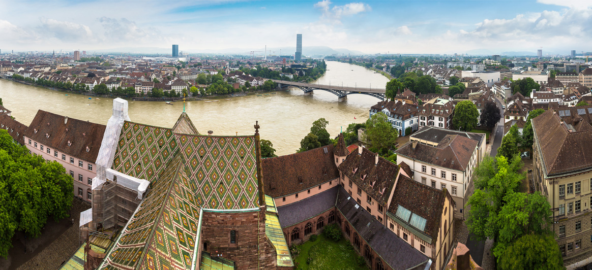 Catedral (Münster): Construida entre los siglos XI al XVI en estilo románico-gótico, es el símbolo de la ciudad. La catedral de Basilea es una obra maestra del arte ornamental, de azulejos multicolores en el techo y maravillosas esculturas. Sus torres gemelas se alzan sobre el Rin, y la terraza (Münster Pfalz) de la parte posterior del edificio ofrece una vista excepcional sobre el río, la cordillera francesa de los Vosgos y la Selva Negra. Dentro del templo se encuentra el sepulcro del importante humanista y filósofo del Renacimiento, Erasmo de Rotterdam.