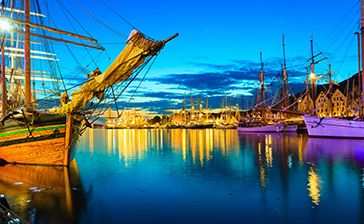 Crucero por los fiordos: Bergen es la puerta de entrada para explorar las impresionantes formaciones talladas por la propia naturaleza, de la erosión del suelo durante el retroceso de los glaciares. Al norte de la ciudad y relativamente cerca, se desarrolla en una longitud de 205 metros el fiordo más grande de Noruega, el llamado Sognefjord, con una profundidad del agua que llega a los 1300 metros. Acantilados verticales se sumergen en las aguas de color azul oscuro, ranurados por arroyos y cascadas de la nieve fundida de las montañas. Entre la dentada costa, brotan densos bosques y barrancos desnudos, claros y grupos de casas de colores. Se organizan cruceros diarios hasta allí, a partir del puerto de Bergen.