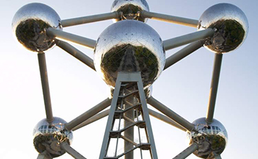 Atomium: símbolo futurista de Bruselas, a pesar de haber sido construido hace medio siglo, para la Exposición Internacional de 1958. La gigantesca escultura, obra arquitectónica de concepción única, que se eleva en el corazón de la ciudad, es la representación de un átomo de hierro ampliado 156 mil millones de veces. Entre en su interior, pasee a través de las esferas y los tubos y disfrute de la panorámica en 360ο de Bruselas.