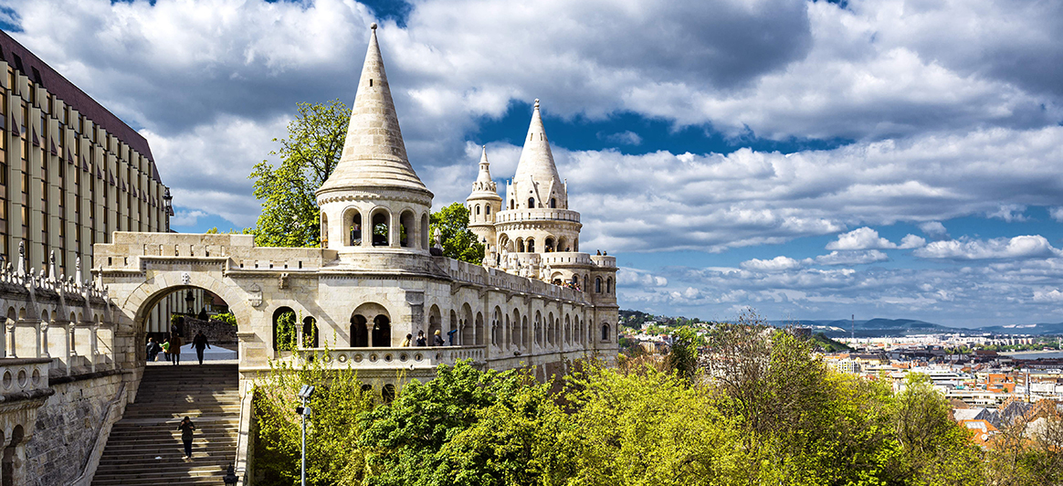 Bastión de los Pescadores: monumento neogótico del siglo XIX en la parte de Buda, con siete torres cónicas que representan las tribus magiares. Desde aquí podrá observar todo el Danubio y Pest.