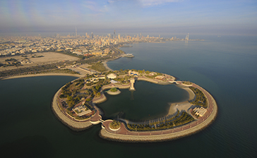 Torres de Kuwait: emblema del emirato, las delgadas tres torres se reflejan en las aguas del Golfo. Se construyeron en 1979 en el corazón de la capital, como símbolos del desarrollo económico de Kuwait. Visite la torre central con las dos bolas de acero y una altura de 187 metros. Cuenta con un restaurante, una cafetería y un observatorio a 123 m del mar, completando un total de 360° de rotación en menos de media hora, para una vista panorámica de la ciudad y la costa.