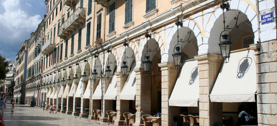 El Casco Antiguo: Toda la ciudad de Corfú es una atracción, un museo viviente al aire libre. Incluida en el catálogo de los monumentos del Patrimonio de la Humanidad de la UNESCO, la fascinante ciudad de Corfú descubre un rostro totalmente distinto de Grecia con estrechas «kantounia», palacios, fortalezas, museos, bibliotecas, pinacotecas, iglesias, edificios públicos y mansiones privadas. Comience el recorrido desde la Spianada, la verdísima plaza que ostenta el título de la mayor de los Balcanes. Aquí podrá ver la famosa avenida Yeoryíu I, más conocida como Liston, el impresionante complejo de edificios con arcada construido según los planos de Mathieu de Lesseps, padre del constructor del Canal de Suez.