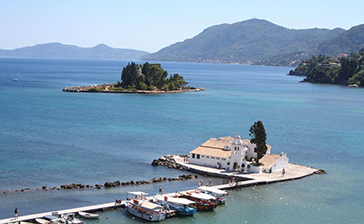 Kanoni: Una de las zonas más bonitas de la isla, nombrada así por la artillería que instalaron los franceses en la zona durante la primera ocupación francesa. Descienda hasta la pequeña isla de Vlacherna, que está unida con Corfú mediante un pequeño sendero de tierra, para ver la pequeña iglesia de la Virgen, del siglo XVII. Y no deje de disfrutar de una paseo en barca hasta la diminuta Pontikonisi, una roca verdísima que domina el centro de la bahía y que, según la leyenda, es el barco petrificado de Ulises.