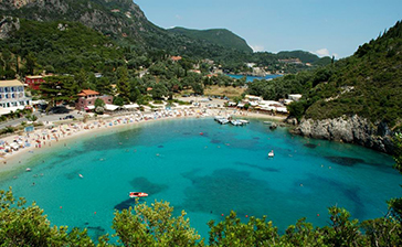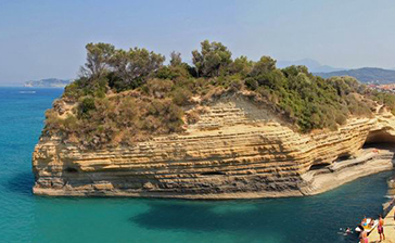 Playas: El mar Jónico es famoso mundialmente por sus cristalinas aguas de color turquesa y por sus playas de arena blanca, y Corfú es «responsable» en gran medida de esta fama. Elija la playa que elija —organizada o no—, el paisaje natural por sí solo le resultará fascinante. No se pierda el Sidari con el famoso Canal del Amor, una roca esculpida por la erosión del agua y del aire y Paleokastritsa con las aguas cristalinas. Si prefiere las playas de arena, diríjase a la famosa Glyfada, en la costa occidental de la isla. Y por supuesto, visite el inesperado paisaje del sur, las playas de Chalikounas e Issos, con el bonito humedal del lago Korision justo detrás.