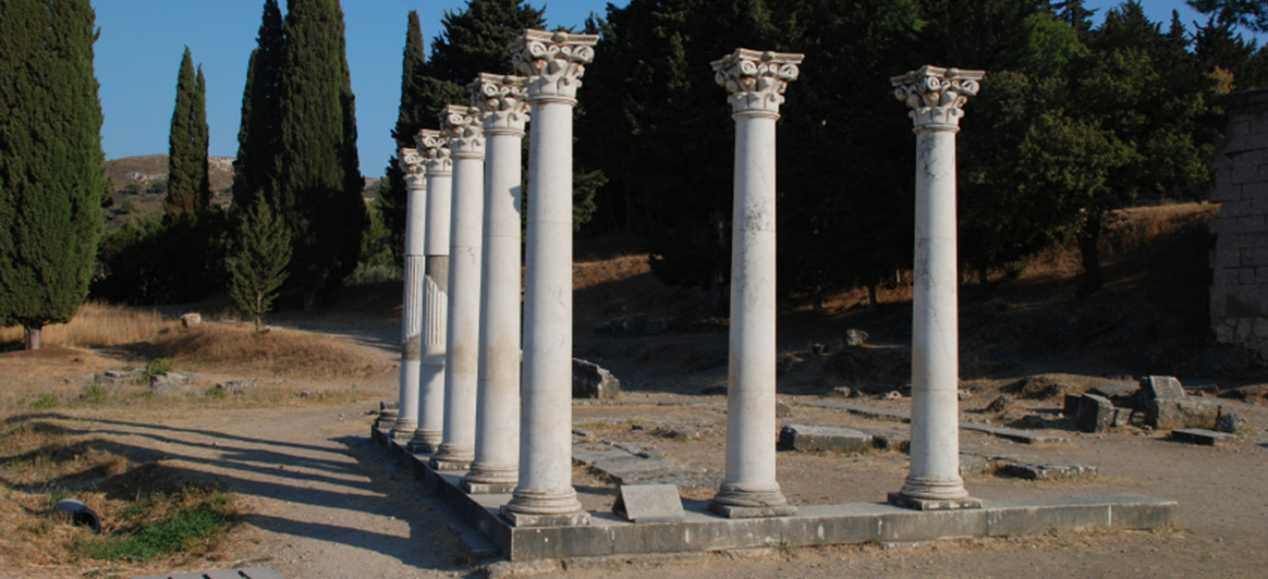 Asclepeion: Dedicado al dios de la medicina, famoso ya desde la Antigüedad, el complejo de monumentos más importante de la isla fue construido el s. IV a.C. en la ladera de una verde colina con una impresionante vista sobre el mar. Allí, a 3,5 km al norte de la ciudad, se desarrolló bastante la ciencia de la medicina, gracias a la escuela que Hipócrates había fundado en la isla. Se conserva un gran pórtico, un conjunto de fuentes termales, el templo jónico de Asclepio, diversos templos más pequeños, el gran templo dórico de Asclepio y las ruinas de una iglesia paleocristiana.