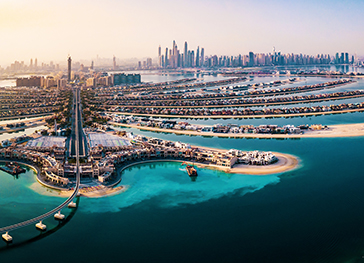 Palm Jumeirah: este impresionante archipiélago artificial compuesto de islas en forma de palmera frente a la costa de Dubái es un milagro arquitectónico y una de las islas artificiales más grandes del mundo. La icónica ciudad flotante se conecta con el interior por una autopista de 5 km pero también por monorraíl. En ella podemos encontrar hoteles ultralujosos con playas privadas, residencias caras, parques temáticos, clubes de playa con piscinas infinitas y restaurantes internacionales multiestrella que sirven unos platos fantásticos con vistas al Golfo Pérsico. Venga y maravíllese con el magnífico complejo hotelero Atlantis The Palm que cuenta con el famoso parque acuático Atlantis Aquaventure y el hotel The Palm con la plataforma de observación «The View at the Palm» desde la que podrá disfrutar de una vista panorámica de Dubái desde una altura de 240 metros. El paseo marítimo de Palm Jumeirah en forma de media luna que rodea el archipiélago es uno de los paseos más bellos y exóticos de Dubái.