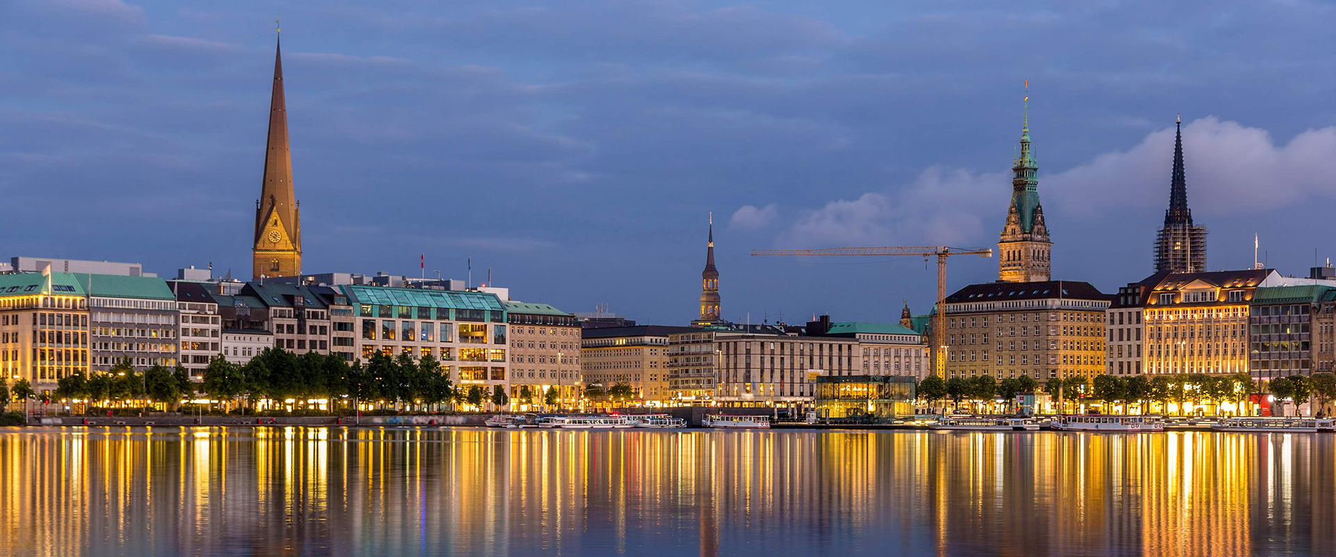 Lago Alster: El lago artificial Alster, a muy poca distancia del centro de la ciudad, es un paraíso para escapadas y recreo para todas las etnias de Hamburgo. La maravillosa naturaleza de césped, robles, castaños, cisnes y ocas del parque que lo rodea y los veleros navegando en sus tranquilas aguas componen un escenario idílico. En verano es un lugar ideal para pasear en barca y en invierno, sus heladas aguas, se transforman en pista para patinar sobre hielo y montar en trineo.