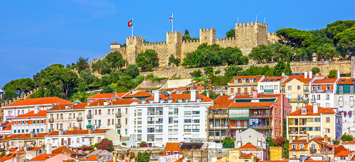 Castillo de San Jorge: En la cumbre de la colina del barrio medieval Alfama, el imponente Castillo de San Jorge (Castelo Sao Jorge, s. V) con sus almenas y sus 18 torres, ofrece una vista panorámica conmovedora de la ciudad.