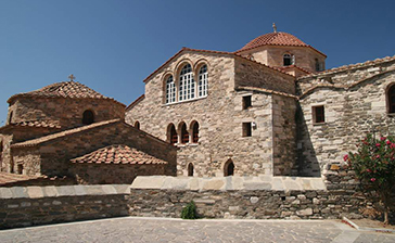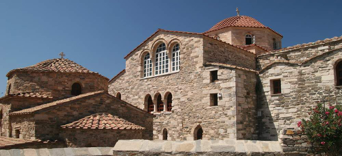 Panagia Ekatontapyliani (Virgen de las Cien Puertas): A poca distancia del puerto de Parikia se encuentra la iglesia bizantina más antigua del Egeo, fundada hace 17 siglos por Santa Elena. Este es uno de los más importantes monumentos paleocristianos de Grecia, una basílica cruciforme con cúpula que sufrió muchos desastres en su larga historia. Tenga en cuenta que las esculturas que adornan el interior de la iglesia provienen del antiguo templo de Deméter que estaba en Parikia y el baptisterio que se encuentra en el lado sur de la iglesia es el más antiguo de toda la Iglesia Ortodoxa. En Ekatontapyliani se alberga el Museo Bizantino de Paros con una sobresaliente colección de iconos raros y otras reliquias religiosas.