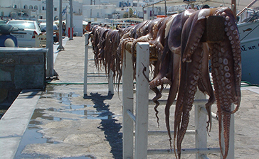 ¡Paros es un paraíso para los amantes de la cocina! Pruebe pulpo con arroz pilaf, empanada con queso myzithra sin sal, azúcar y canela, estofado de conejo (¡la carne se marina durante 12 horas!). No se pierda la "gouna" (pescado secado al sol), una delicia picante que se combina perfectamente con vino u ouzo, el pulpo a la parrilla, frijoles, albóndigas de tomate, albóndigas de garbanzos y la sopa de garbanzos. En Parikia, Naoussa y otros pueblos de la costa encontrará lugares animados, bonitas tabernas y restaurantes con una variedad de sabores y pescados frescos. Pero si quiere carnes jugosas y parrillada diríjase al pintoresco pueblo montañoso de Lefkes. En cuanto a la diversión nocturna, siga a las multitudes entusiastas en el puerto de Naoussa, donde lo encontrará a menudo lleno de gente entrando y saliendo de los bares; Parikia ofrece también buenas opciones para disfrutar de la noche.