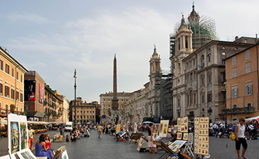 Panteón: templo de planta circular con analogías simétricas que fue construido en tiempos del emperador César Augusto y reconstruido por el emperador Adriano y dedicado a todos los dioses romanos, para ser posteriormente convertido en iglesia. Admire la «Madonna del Sasso» sobre la tumba del pintor Rafael.