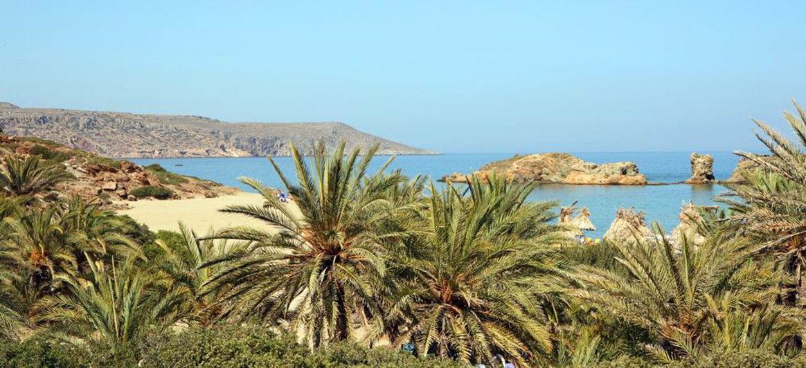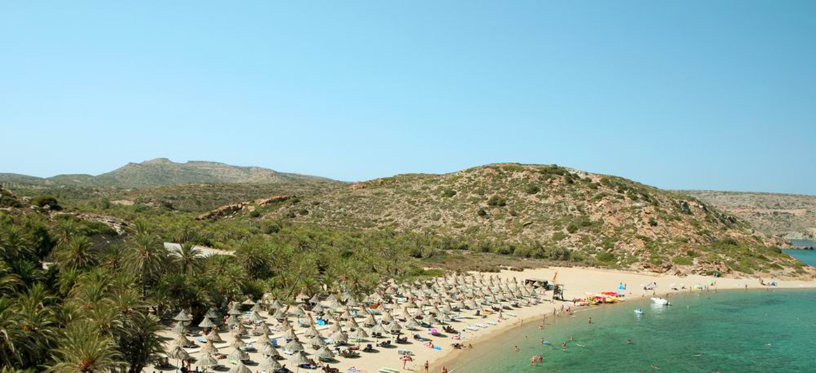 Vai: Al este de Sitía, a 25 km de distancia, se encuentra una de las playas más famosas de Grecia. Vai, el único bosque de palmeras que existe en Grecia, llega hasta la arena y crea así un paisaje exótico excepcional. Según la leyenda, se creó a partir de los huesos de los dátiles que tiraban los militares egipcios o los piratas sarracenos.