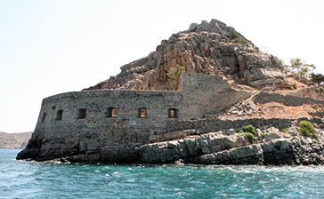 Spinalonga: El periodo de la dominación veneciana dejó en la región importantes monumentos, algunos de los cuales se conservan en excelente estado. Uno de ellos es la fortaleza de 1579 que se encuentra en el islote de Spinalonga, frente a Elounda. Este importante castillo recibe actualmente a una multitud de visitantes, evocando los «fantasmas» del pasado reciente, pues durante la primera mitad del siglo XX sirvió de centro de exilio y aislamiento para los leprosos de Creta. Se puede llegar en barco desde Agios Nikolaos, Elounda y Plaka.
