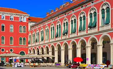 Palacio de Diocleciano: La idea del emperador Diocleciano de construir en Split en el 305 un palacio para los días de su retiro de la vida pública dotó a la ciudad de uno de los monumentos romanos más imponentes del mundo (Monumento del Patrimonio Cultural Mundial de la UNESCO). El majestuoso complejo de edificios rodeado de altos muros con tres puertas de entrada es un conjunto de calles, templos, aposentos imperiales y un Peristilo. En los aproximadamente 220 edificios que encierra late hoy el corazón del centro histórico de la ciudad, con multitud de viviendas, establecimientos, cafeterías y restaurantes. Dirección: Dioklecijanova 5, Split