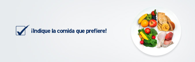 ¡Háganos saber cuáles son sus preferencias en cuanto a comida y nos encargaremos de que el menú servido en vuelo se ajuste a sus necesidades!