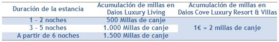 Por las estancias en cualquiera de los dos hoteles Daios hasta el 31.07.2013, los usuarios ganan millas conforme a la equivalencia 1€ = 2 millas de canje.