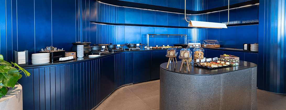 La sala Business renovada de AEGEAN en Larnaca ofrece a los pasajeros un ambiente agradable para relajarse, trabajar con comodidad, disfrutar de un café o bebida o degustar algunas de las opciones culinarias de un bufé abundante. Hemos creado un entorno de hospitalidad y lujo sofisticado en un espacio renovado con una superficie de 345 metros cuadrados y diseñado con materiales de gran calidad.