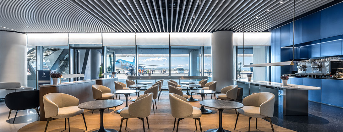 No importa cuál sea el destino incluido en el espacio Schengen, los pasajeros pueden relajarse en la elegante zona de estar y disfrutar de un café aromático, saborear las deliciosas opciones del bufé que se ofrecen en el comedor o trabajar en un entorno tranquilo antes de la salida de su vuelo.