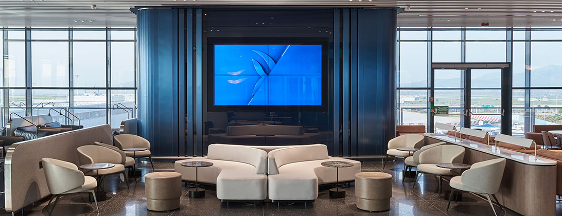 Con una extensa variedad de materiales griegos clásicos como mármol, mosaico, vidrio y madera, hemos creado un espacio contemporáneo de estética moderna ideal para disfrutar de un ambiente relajado que satisfaga las necesidades de todos los viajeros, independientemente del vuelo y de la hora del día.